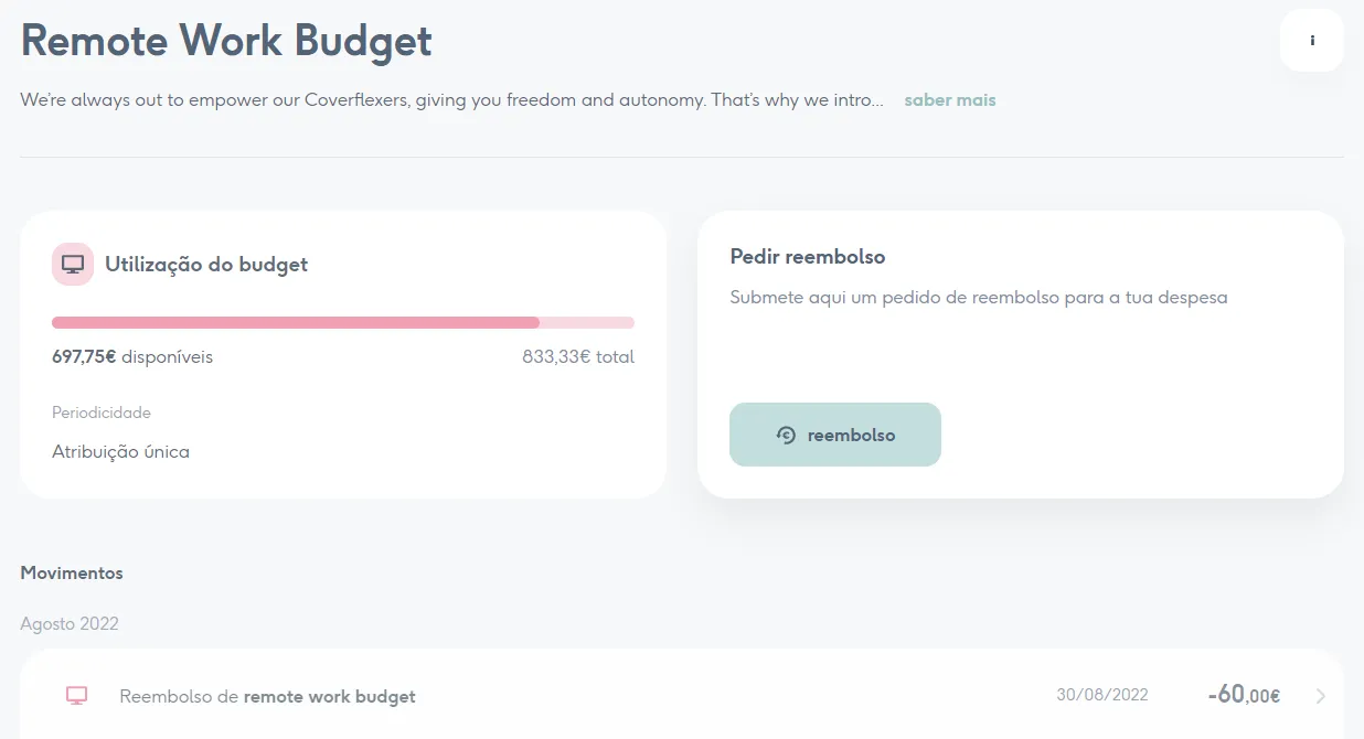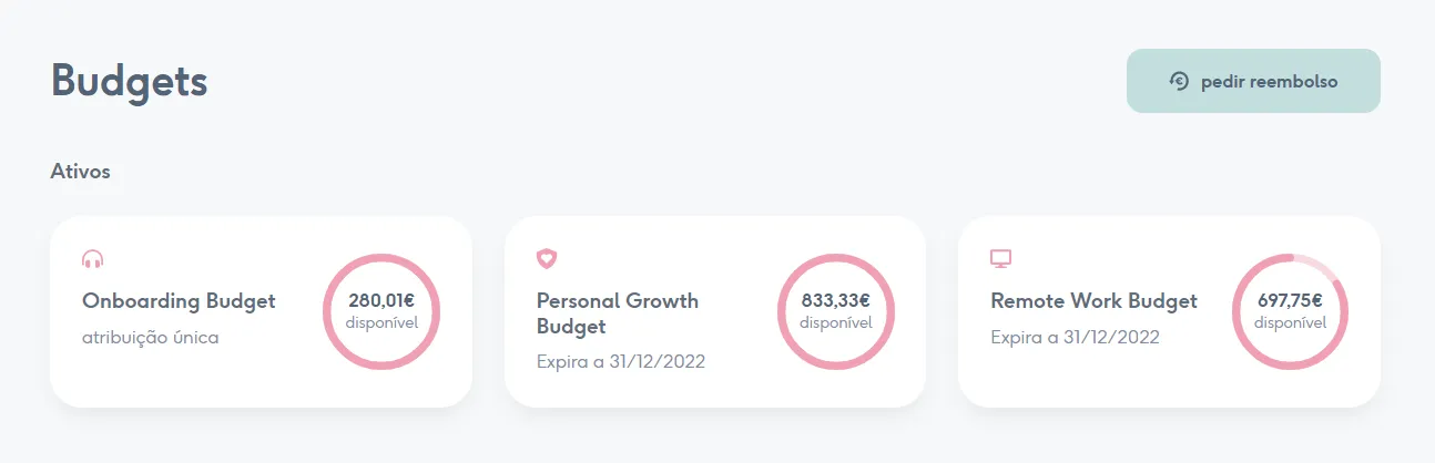 Depois de estarem activos, os budgets aparecem do lado do colaborador de acordo com o que foi configurado pela empresa.